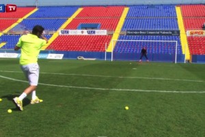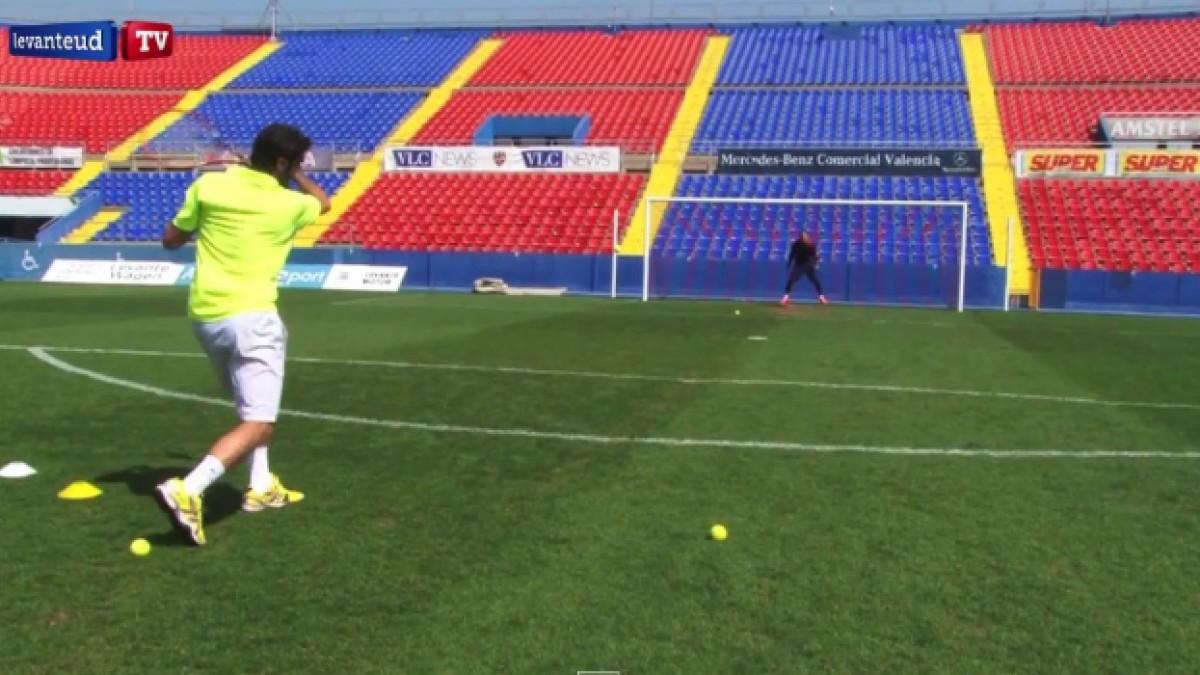 El portero del Levante UD, Keylor Navas y el tenista español Pablo Andujar, que ocupa el puesto 37 de la ATP, se enfrentaron en un duelo en el césped del Ciutat de València para ver cuántas atajadas puede realizar el meta costarricense al valenciano, con bolas de tenis que alcanzan una velocidad de más de 160 km por hora.