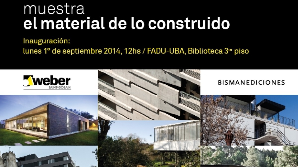 Desde el lunes 1° de septiembre se encuentra abierta la muestra “El Material de lo Construido”. Esta exposición está presente en la Biblioteca de la FADU-UBA, en el 3° piso, dentro de Ciudad Universitaria, CABA. Permanecerá hasta el día viernes 5 de septiembre inclusive y puede ser visitada de 9 a 23 hs. Luego tendrá continuación en diferentes facultades de arquitectura del país.