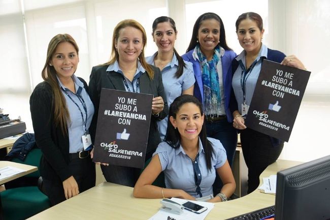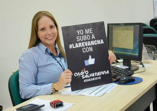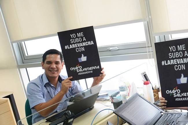 En una gran acción junto al Banco Fassil, los funcionarios de esta institución se sacaron distintas fotografías con el cartel de #LaRevancha, apoyando al Chavo de cara al Rally Dakar 2016.