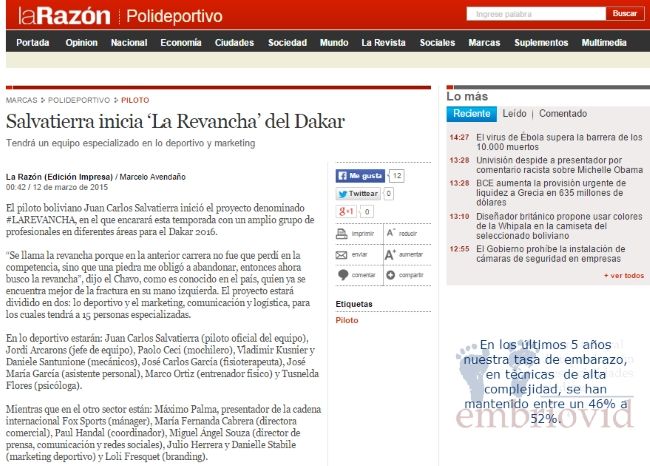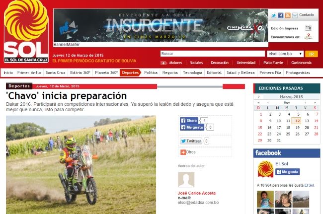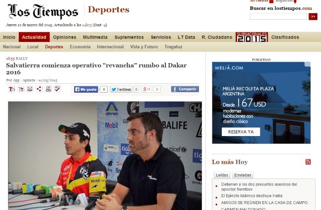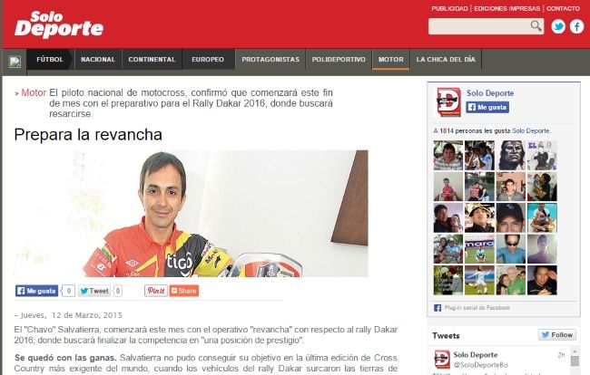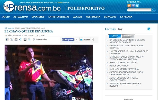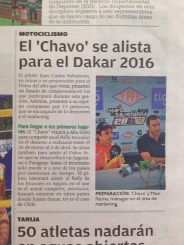 Este ejemplo del deporte boliviano realizó un evento para toda la prensa nacional y sus patrocinadores y reveló allí a los encargados de llevar adelante las distintas áreas de su preparación para el Dakar 2016.