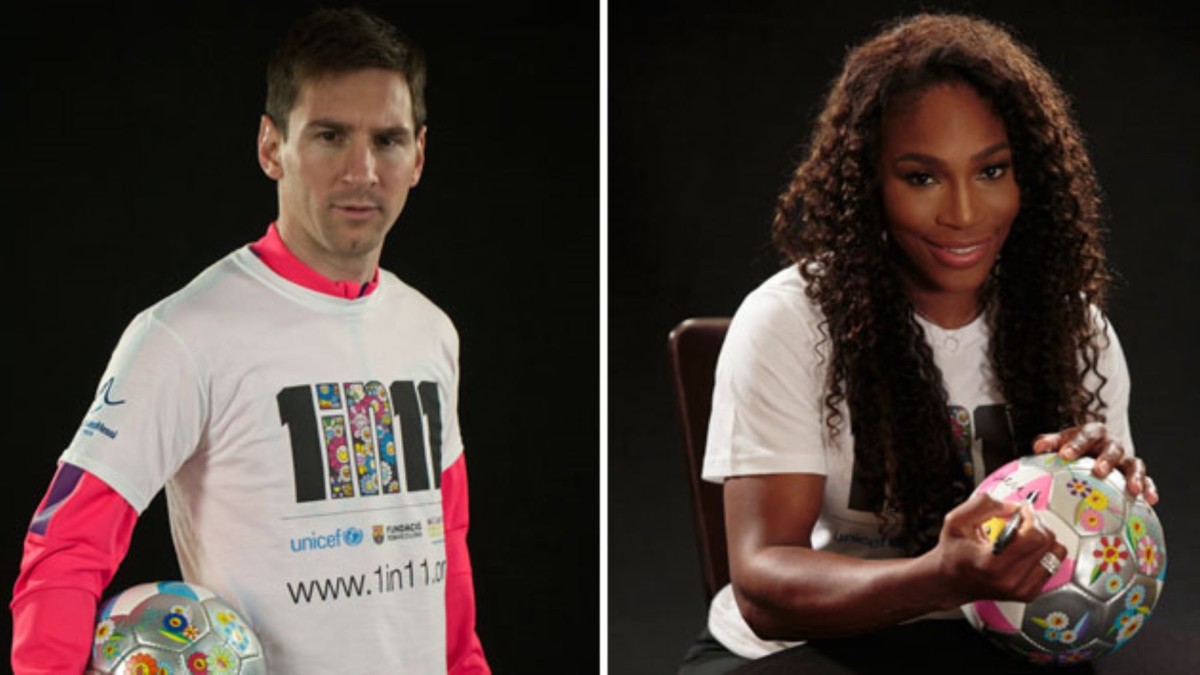 La campaña "1 in 11" de UNICEF cuenta con dos grandes embajadores: Lionel Messi y Serena Williams. El futbolista y la tenista contribuyen en esta cruzada del organismo que lucha por los derechos del niño en esta campaña destinada a que todos los niños del mundo estén escolarizados. "1 in 11" alude a que uno de cada once niños en todo el mundo está fuera del circuito educativo.