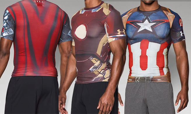 Inspirada en The Avengers: The age of Ultron, la marca estadounidense Under Armour presentó su colección especial de indumentaria que refleja los míticos trajes del Capitán América, Thor y Ironman, entre otros.