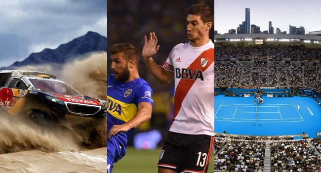 El 1 de enero, la temporada arranca con dos partidos de la Premier League inglesa, donde Watford-Tottenham y Arsenal FC-Crystal Palace son el plato del día, que completan dos encuentros de la NBA, tres de la NFL, uno del Top 14, la Copa Hopman, y el tan esperado Rally Dakar.