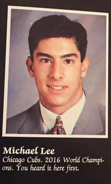 Pero un año y trece días después, los Cubs son el mejor equipo de béisbol del mundo y quien sí festeja su pálpito es Michael Lee, quien en su anuario de 1993, cuando aún era un joven estudiante, publicó: "Chicago Cubs, 2016. World Champions. You heard it here first".