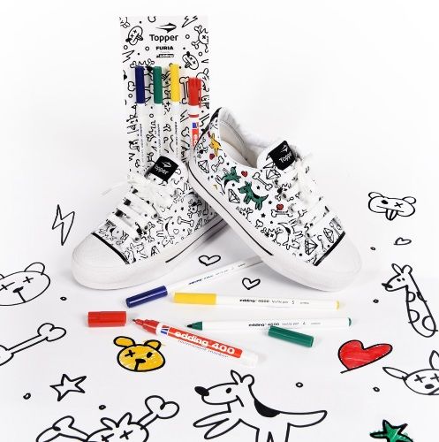 Cada pisada será única. Con la intención de brindarles a los niños la oportunidad de intervenir su calzado, TOPPER lanza su clásico modelo de zapatillas de lona blanca, ahora, estampado con divertidas figuras que podrán ser coloreadas con los marcadores EDDING que vienen de regalo.