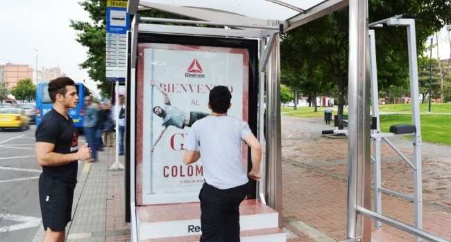Reebok es una de las marcas más relacionadas con el alto entrenamiento deportivo. En Bogotá y bajo la campaña Gym is Everywhere (“El gimnasio está en todas partes”), la marca estadounidense convirtió una parada de colectivos en un lugar ideal para el entrenamiento.