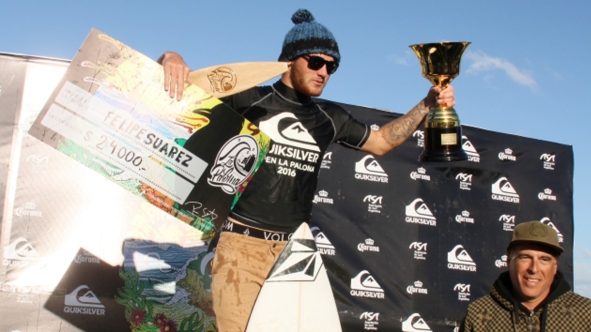 "Es la nueva joya del surf argentino", se escuchaba en 2013 cuando el circuito mundial (WSL) volvió al país y él se paseaba con cara de nene entre corredores top. Tres años después, Felipe Suárez ya no es más una promesa sino una realidad. La chapa la cambió definitivamente en su Mardel natal al consagrarse como el campeón argentino más joven de la historia. El pibe de 19 años lo hizo ante rivales con más nombre y experiencia, y tras imponerse en el torneo de mayor prestigio y exigencia, el que todos desean ganar. En la final superó al mítico Martín Passeri (40 años y cinco veces campeón) y se llevó la 13ª edición del Quiksilver Open La Paloma, evento de lujo que cierra históricamente el circuito nacional y se corre en un geografía especial (frente a un acantilado de 15 metros en MdP) y con las olas más grandes (hubo hasta de 3 metros, ver video).