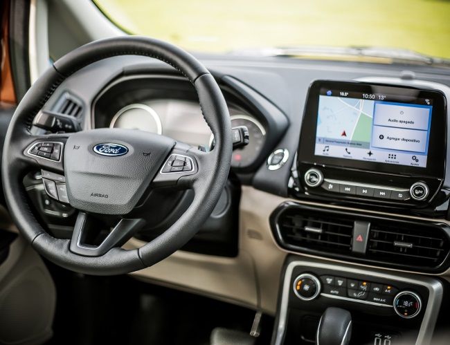 Adicionalmente, la Nueva Ecosport presenta un cluster totalmente re-diseñado, incorporando una pantalla color de 4,2” para las versiones Freestyle y Titanium; nuevo diseño y ubicación de los controles y salidas de aire; puertos USB; renovado diseño de volante con distintos tipos de comandos; y una nueva consola central con apoya brazos. En su versión Titanium, ofrece como novedad tapizados de cuero color claro.