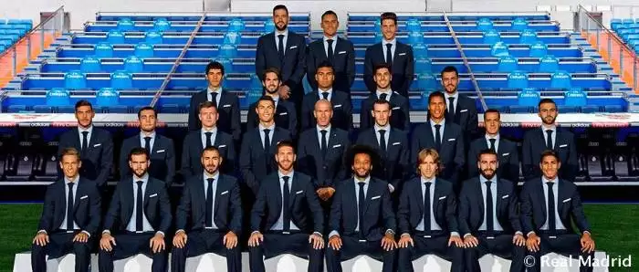 En un acuerdo que incluirá también al plantel de básquet del club y a la filial del equipo en Castilla, la marca propone junto con el traje una camisa de vestir de tonalidad azul medio, una corbata de punto de seda en azul marino y unos zapatos y cinturón de piel negros.