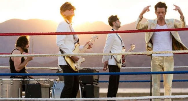 Con el líder y vocalista, Brandon Flowers, vestido de color dorado, la escena apunta a reconstruir algunos de los pasajes previos al encuentro entre dos multi campeones del boxeo y artes marciales mixtas respectivamente.