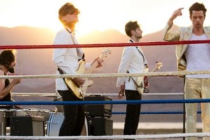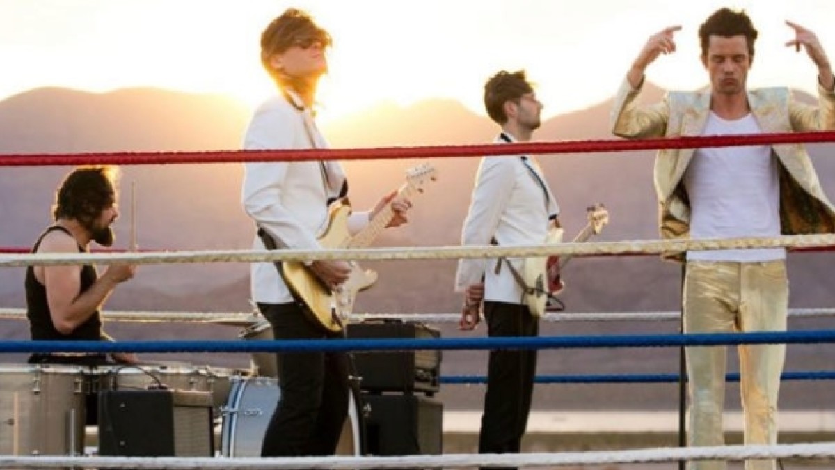Con el líder y vocalista, Brandon Flowers, vestido de color dorado, la escena apunta a reconstruir algunos de los pasajes previos al encuentro entre dos multi campeones del boxeo y artes marciales mixtas respectivamente.
