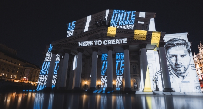 La proyección sobre el teatro Bolshoi en Moscú presentó una serie de imágenes que celebran lo mejor de la Copa del Mundo y dan pie al pueblo ruso a apoyar a su selección. La proyección incluyó diseños que presentaron a las estrellas de la selección rusa, el lema "Together to Win" (Juntos para Ganar) escrito a la espalda de la camiseta de Rusia, el Telstar18 (el balón oficial del Mundial), una serie de destacados jugadores de adidas y finalmente un gráfico con imágenes de la nueva campaña de adidas "La creatividad es la respuesta" y "La creatividad une al mundo".