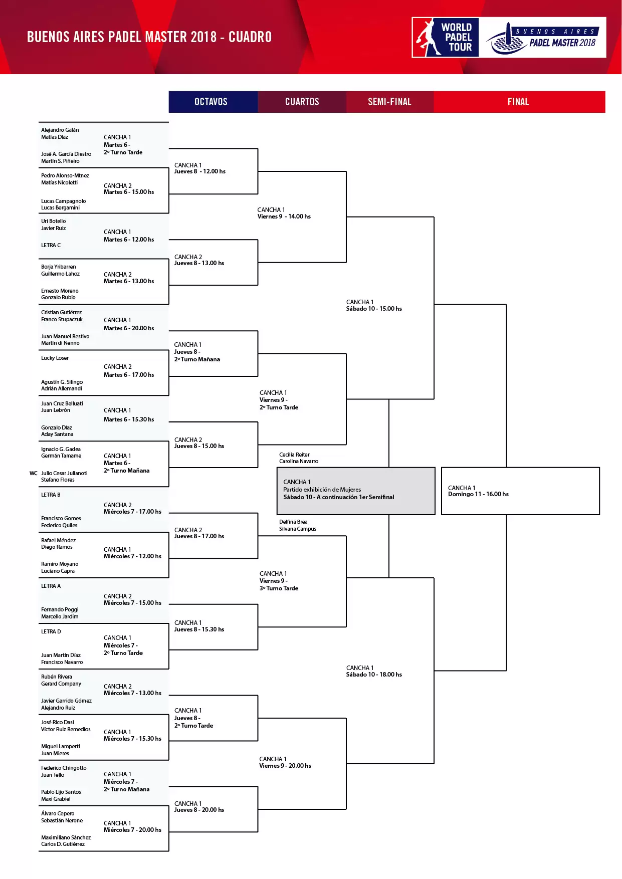 Mientras continúan los preparativos para volver a asegurar un evento que brilla de principio a fin, el Buenos Aires Padel Master contará nuevamente con las estrellas de este deporte que aseguran pádel de alto vuelo, con los argentinos ‘Sanyo’ Gutiérrez y Maxi Sánchez como uno de los principales protagonistas y actuales líderes del ranking. En tanto, sobran otros nombres atrayentes como ‘Paquito’ Navarro y el zurdo Juan Martín Díaz, el chaqueño Franco Stupaczuk o, entre otros, el bahiense Miguel Lamperti, quien junto a su compañero Juani Mieres también serán una de las duplas capaces de ser animadores hasta las instancias finales.