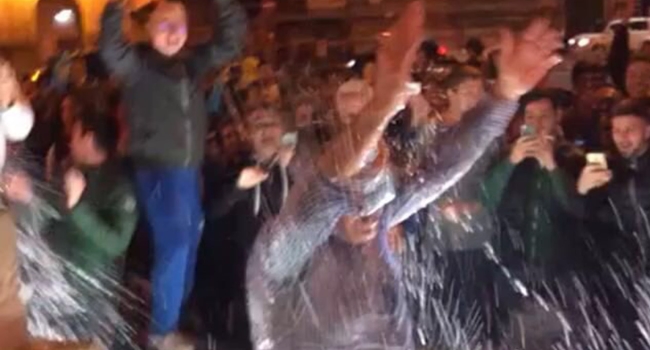 El empresario estadounidense fue a la fuente de los Leones, en el centro de la Piazza del Popolo (plaza del Pueblo) y protagonizó una escena digna de película mientras cientos de aficionados enloquecían a su alrededor.