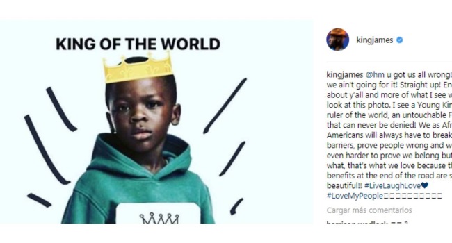 “H&M, no nos entendéis y no vamos a pasarlo por alto. Cuando yo veo esta foto veo a un joven rey. Un líder del mundo, una fuerza intocable que no podrá ser frenada. Los afroamericanos siempre tendremos que romper barreras, demostrar que la gente se equivoca y trabajar más duro que los demás para demostrar cuál es nuestro lugar. Pero eso es lo que nos gusta porque los beneficios al final del camino son maravillosos”.
