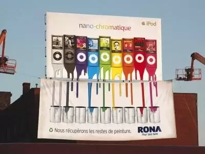Uno de los más claros ejemplos es el de Pinturas Rona y un cartel de Apple, acontecido en la ciudad canadiense de Montreal, en donde una lona se sumó a la valla publicitaria de la tecnológica estadounidense para promocionar su marca.