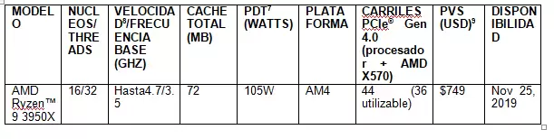 AMD anunció el lanzamiento del altamente esperado y emblemático procesador AMD Ryzen 9 3950X de 16 núcleos, disponible en todo el mundo a partir del 25 de noviembre de 2019. El procesador AMD Ryzen 9 3950X entrega el mejor procesador para gaming con un despliegue de 1080P sin esfuerzos en juegos seleccionados1 y hasta dos veces más poder de procesamiento de energía eficiente en comparación a la competencia2, convirtiéndolo en el procesador de 16 núcleos más veloz en el segmento de PCs de escritorio para consumo3. Además, AMD también anunció un incremento significativo en el rendimiento4, trayendo a los usuarios de escritorio convencionales el procesador AMD Athlon 3000G, disponible a partir del 19 de noviembre de 2019.