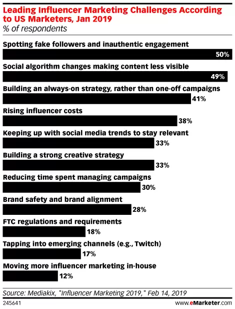 Según una encuesta realizada por la agencia de influencer marketing Mediakix, se pudo obtener resultados que indican que un 38% de los departamentos de marketing creen que el costo creciente del “influencer marketing” es uno de los principales retos a futuro.