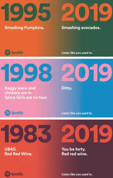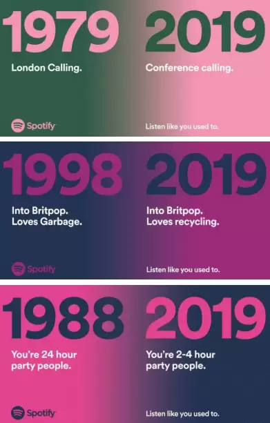 Para ello, Spotify armó en Reino Unido una campaña para romper esa barrera y seguir creciendo. La misma que lleva el nombre “Listen Like You Used To” evoca con nostalgia la creatividad cultural de aquellos años. De esa forma, muestran como la vida y las cosas cambian pero lo que siempre se mantienen son las canciones clásicas.