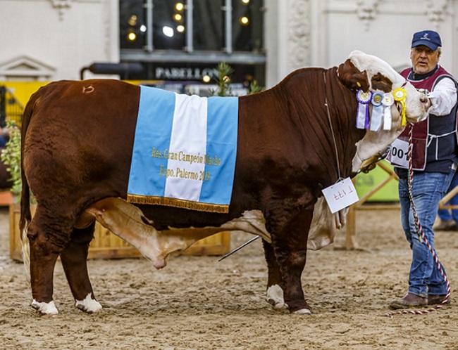 De Rossi, el ternero, proviene de la Cabaña Santa Cecilia, de Trenque Lauquen, empresa de la familia Eyherabide que llegó a la Exposición con ocho animales. "Sabíamos que iba a nacer uno en estos días, esperábamos que lo hiciera un poco más adelante, pero no aguantó", contó Fermín Eyherabide.