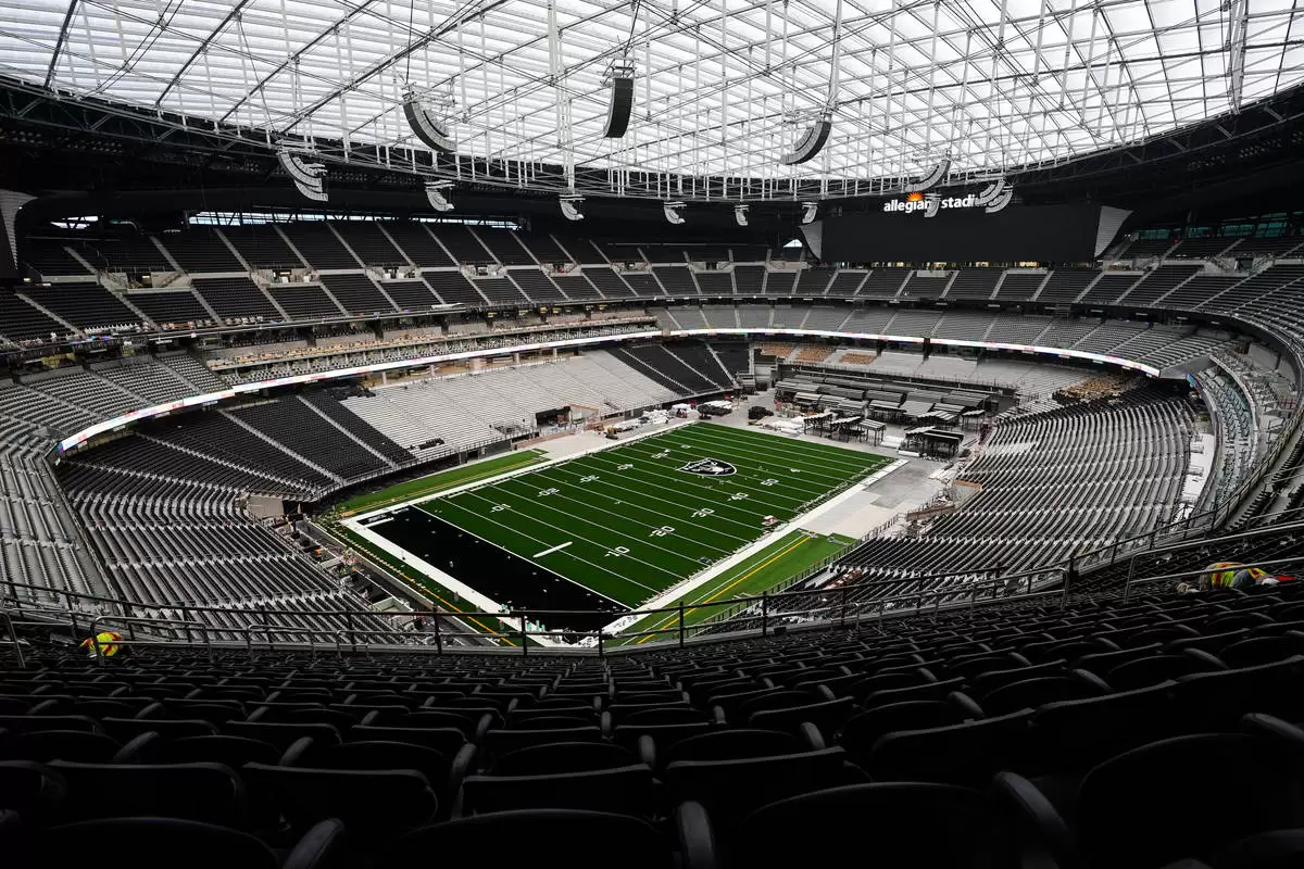 La construcción del Allegiant Stadium tardó 40 meses, más de lo estimado en el proyecto original debido a la pandemia del coronavirus. Entre los detalles más particulares del estadio están las tiras de luces que adornan el exterior negro y plateado del estadio, que se asemeja a los hoteles de lujo que adornan la ciudad.