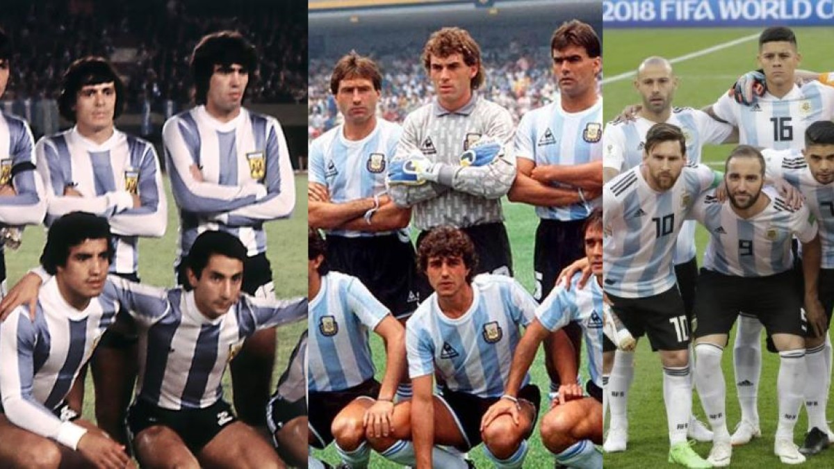 Pasaron 17 Copas distintas, misma cantidad de modelos pero solo 2 marcas y 2 títulos. Los cambios fueron notorios, pero lo que siempre prevaleció e identificó a la Selección y al país, fueron los colores celeste y blanco.