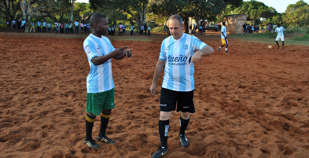 Un argentino que a más de 10 mil kilómetros de distancia alegra y ayuda a la vida de muchísimas personas. Empezó con un viaje y terminó siendo su hogar, al que lo fue amoldando con sus pasiones. Pintó de celeste y blanco la iglesia de Mangunze, la pequeña localidad de Mozambique donde es párroco. Mismo colores de Racing, club que lleva tatuado en su brazo derecho junto a una imagen de Jesús.