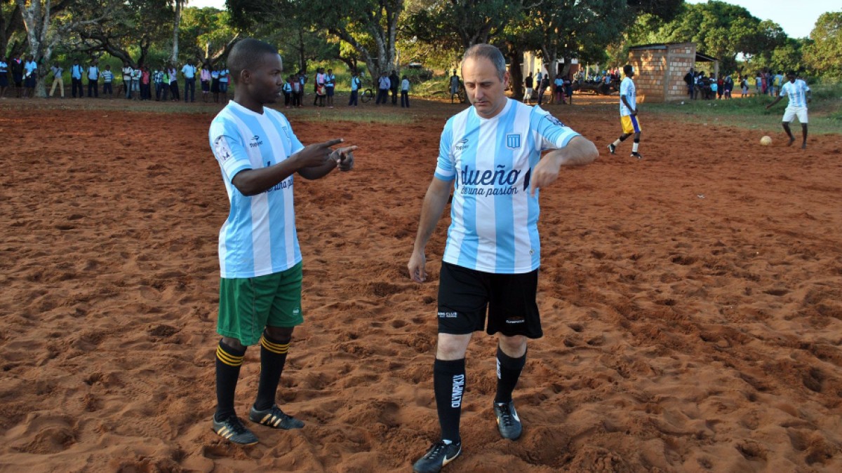 Un argentino que a más de 10 mil kilómetros de distancia alegra y ayuda a la vida de muchísimas personas. Empezó con un viaje y terminó siendo su hogar, al que lo fue amoldando con sus pasiones. Pintó de celeste y blanco la iglesia de Mangunze, la pequeña localidad de Mozambique donde es párroco. Mismo colores de Racing, club que lleva tatuado en su brazo derecho junto a una imagen de Jesús.
