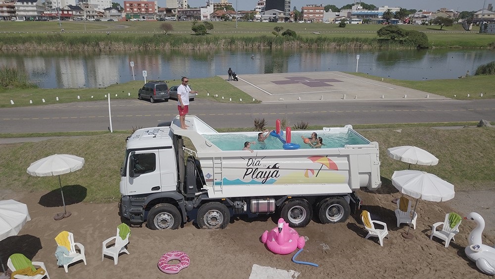 Durante el último verano, Mercedes-Benz Camiones capturó toda la atención de Mar del Plata con una innovadora y divertida iniciativa. La compañía llenó de agua la caja volcadora de uno de sus camiones más robustos, el Arocs 4845, convirtiéndolo así en el primer “Pool Truck”.