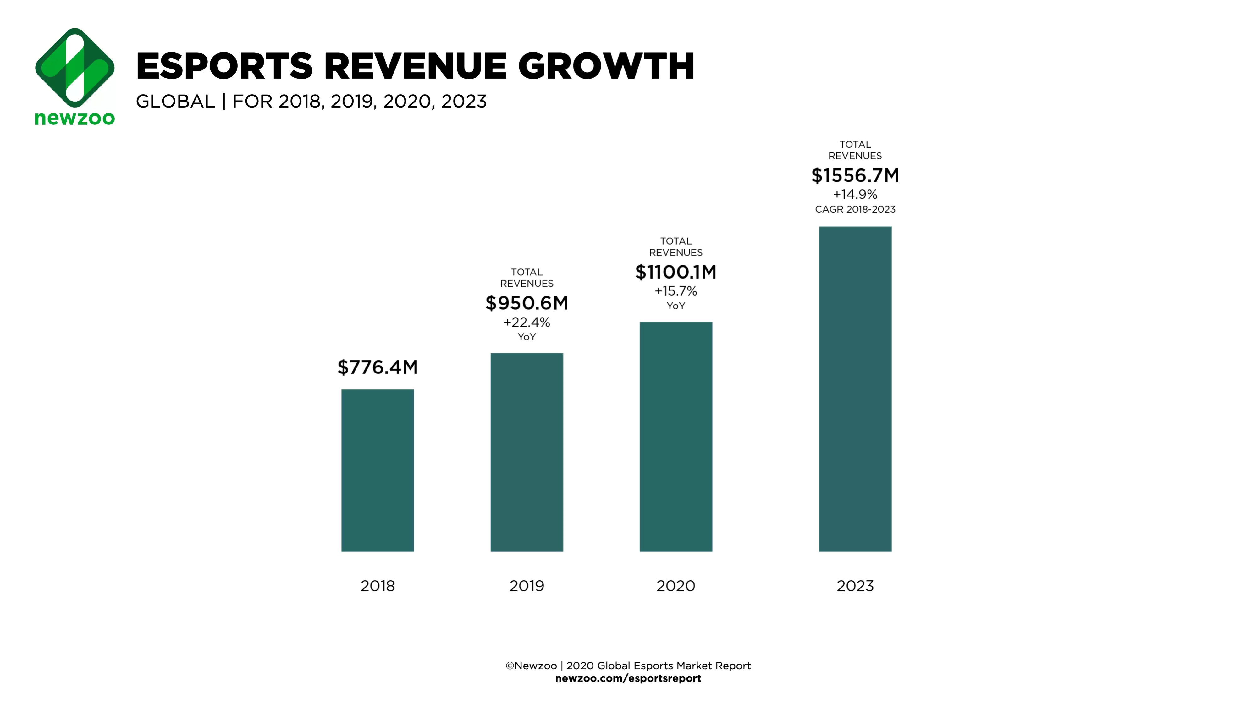 Según las cifras presentadas en el último informe del sitio especializado Newzoo, se espera que los ingresos generados por los eSports superen los mil millones en todo el mundo para 2020.