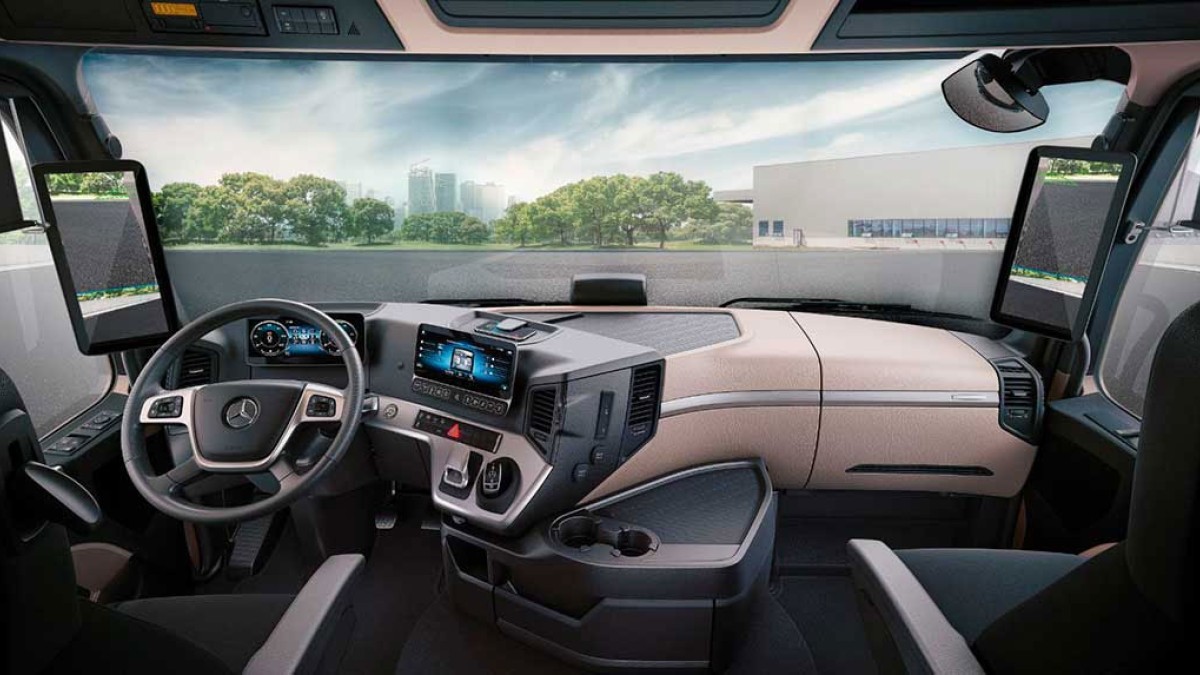 Son ideales para aplicaciones de escalabilidad según las nuevas categorías hasta 55,5 toneladas, como así también bitrenes de 60 y 75 toneladas. Al elevado nivel de equipamiento que ofrece el Actros 2045 se suma también el volante en cuero, asiento de acompañante con suspensión neumática, cama superior de confort, persiana parasol eléctrica en el parabrisas, persiana lateral de ambos lados, bandejas portaobjetos, sistema de sonido, lavafaros, terminaciones de interior con revestimientos en cromo Styleline y refrigerador en cajón debajo de la cama, entre otros.