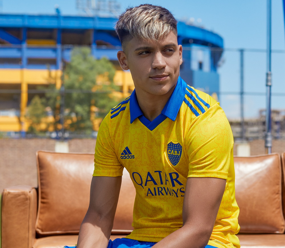El nuevo kit Xeneize rememora las clásicas vestimentas alternativas del club en la década del ’80. La flamante camiseta es amarilla, con detalles en azul y cuello tipo polo. En el frente, se luce una trama con la palabra BOCA aplicada con la misma tipografía que posee el cartel de acceso al mencionado predio.