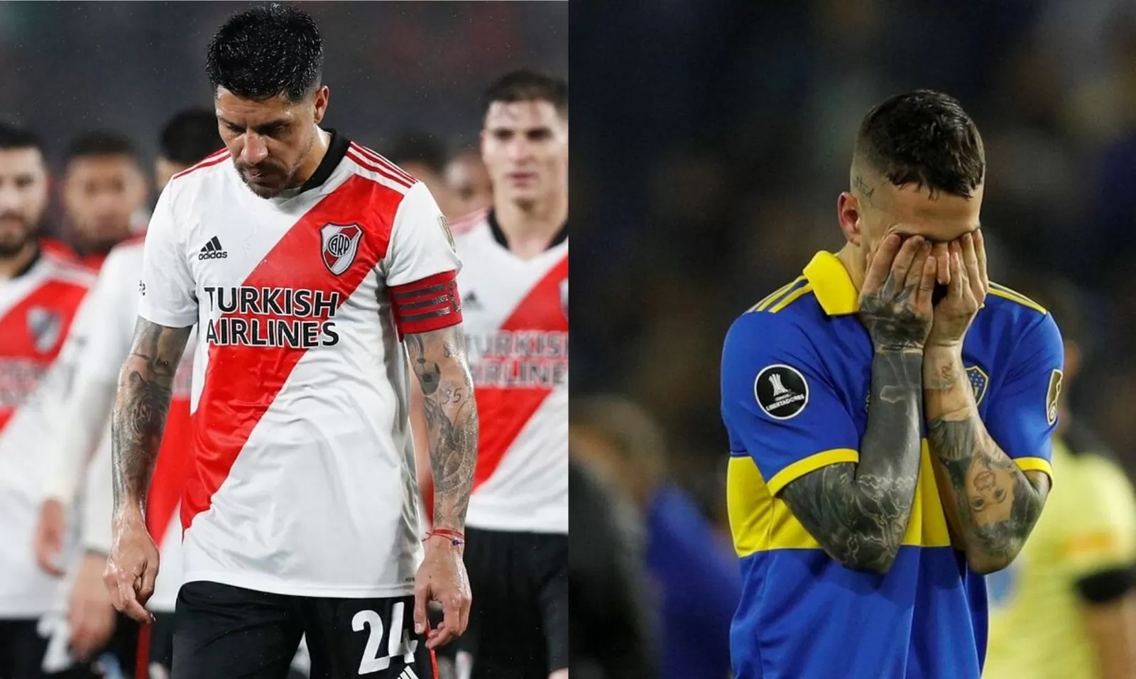 Si vamos aún más atrás podemos encontrar la vez que ambos quedaron fuera de 4tos de final estando participando de la competición: En 2009, Boca quedó en 8vos de final cayendo ante Defensores Sporting de Uruguay y River no logró avanzar en la fase de grupos donde compartió con Nacional de Uruguay, Nacional de Paraguay y Universidad San Martín de Perú.