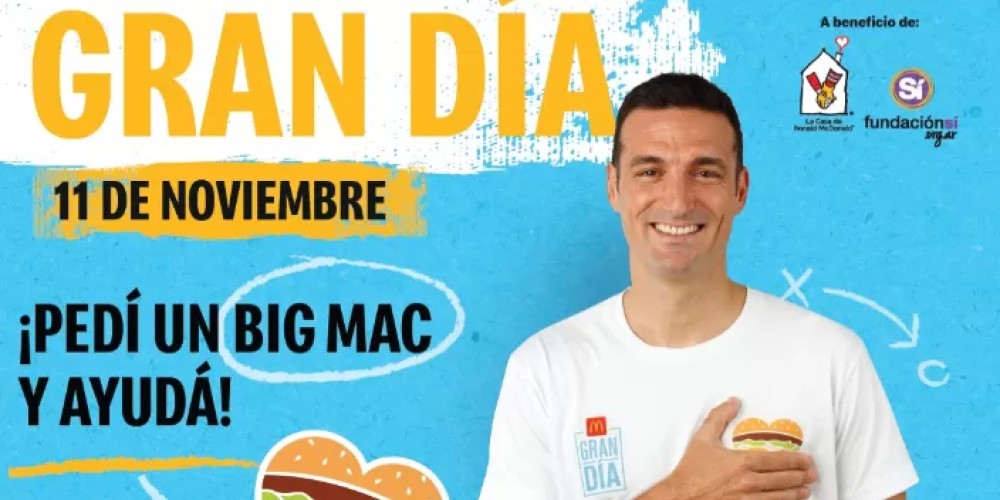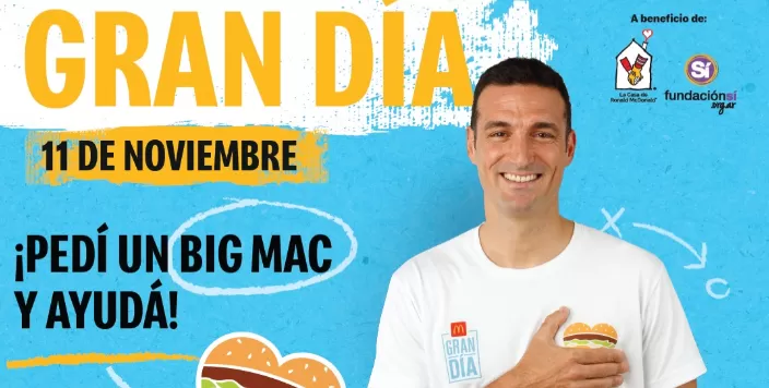 McDonald's continúa firme con su compromiso solidario. Por eso, el viernes 11 de noviembre se lleva adelante una nueva edición del Gran Día, su jornada solidaria más importante del año donde el 100% de lo recaudado por la venta de su hamburguesa Big Mac se dona a la Fundación Sí y la Casa Ronald.