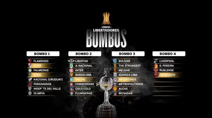 La Fase previa que determinará a los últimos 4 clasificados a la fase de grupos está llegando a su fin y la Copa Libertadores, como cada año en su antesala, ya comienza a palpitarse. De cara al sorteo previsto para el lunes 27 de marzo, los bombos ya están definidos, por lo que Boca y River ya conocen a la gran mayoría de los equipos que pueden ser hipotéticos rivales en dicha instancia. Racing, Argentinos y Patronato, son los otros conjuntos de nuestro país que accedieron al máximo torneo internacional, mientras que Huracán deberá superar a Sporting Cristal para meterse en la zona de grupos.