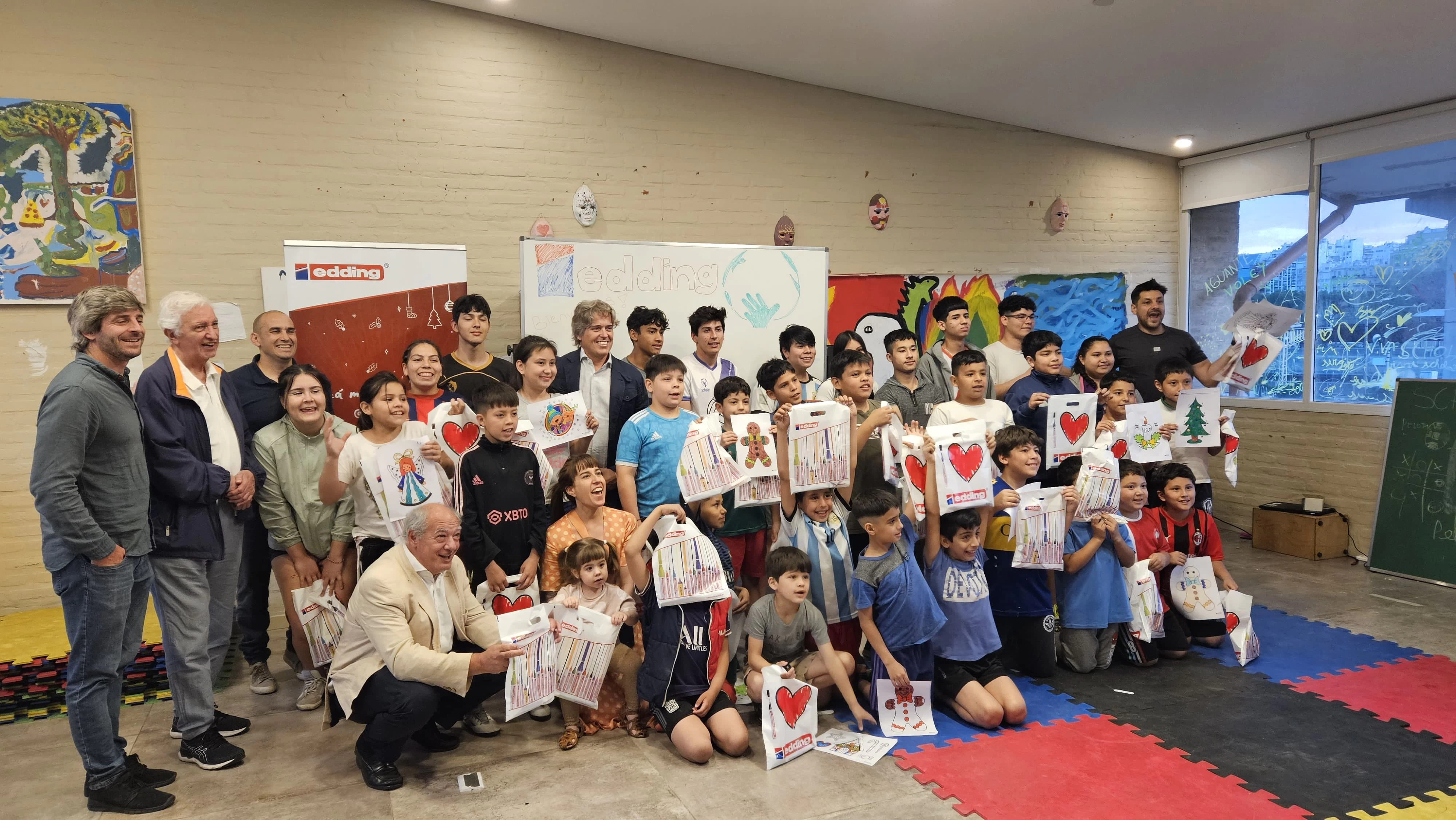 En el marco de la alianza entre Scholas Occurrentes y Grupo Mendizabal establecida este año, la firma edding hizo efectiva hoy la donación de más de 10.000 productos de marcación y escritura, además de modernizar todas las pizarras de las 9 sedes donde se desarrollan los programas educativos de Scholas Ocurrentes, con vistas a las actividades del verano y del año entrante.