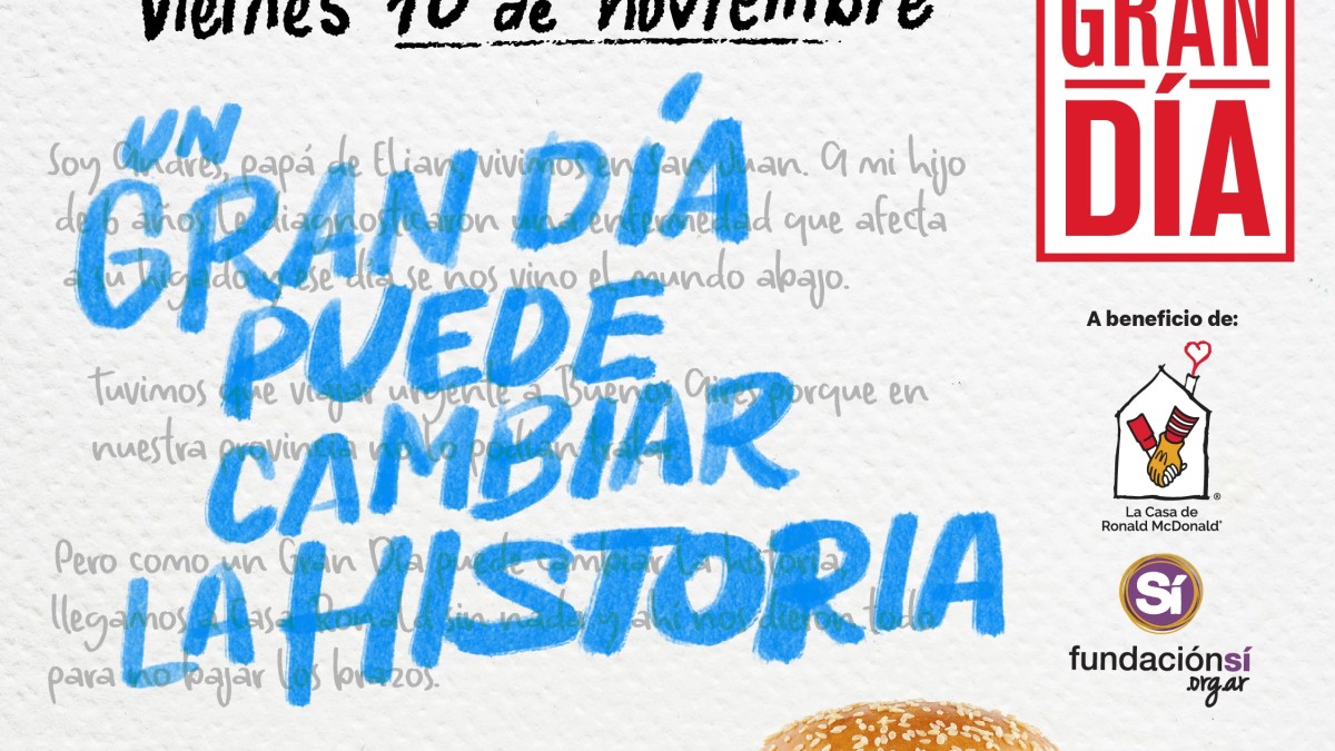 Este viernes 10 de noviembre se llevará adelante una nueva edición del Gran Día, la acción solidaria más importante de la marca donde el 100% de lo recaudado por la venta del Big Mac será donado a Fundación Sí y Casa Ronald para ayudarlos a alcanzar los objetivos propuestos para este año. La pre venta de Big Mac ya está habilitada para todos aquellos que quieran ser parte de la campaña.