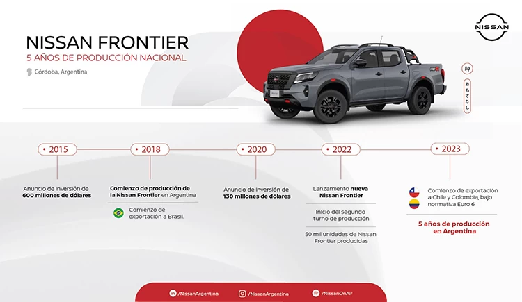 En el año 2015, anunciando una inversión de 600 millones de dólares, Nissan Argentina comenzó a trabajar con el objetivo de comenzar a fabricar la Nissan Frontier nacional y convertirse en un fuerte productor automotriz. Fue en agosto de 2018 que comenzó la producción del primer vehículo que Nissan fabricaría en el país, en la provincia de Córdoba. En marzo de 2019, con menos de un año en el mercado, la Nissan Frontier ya había acumulado un 3,3% de participación en el segmento.