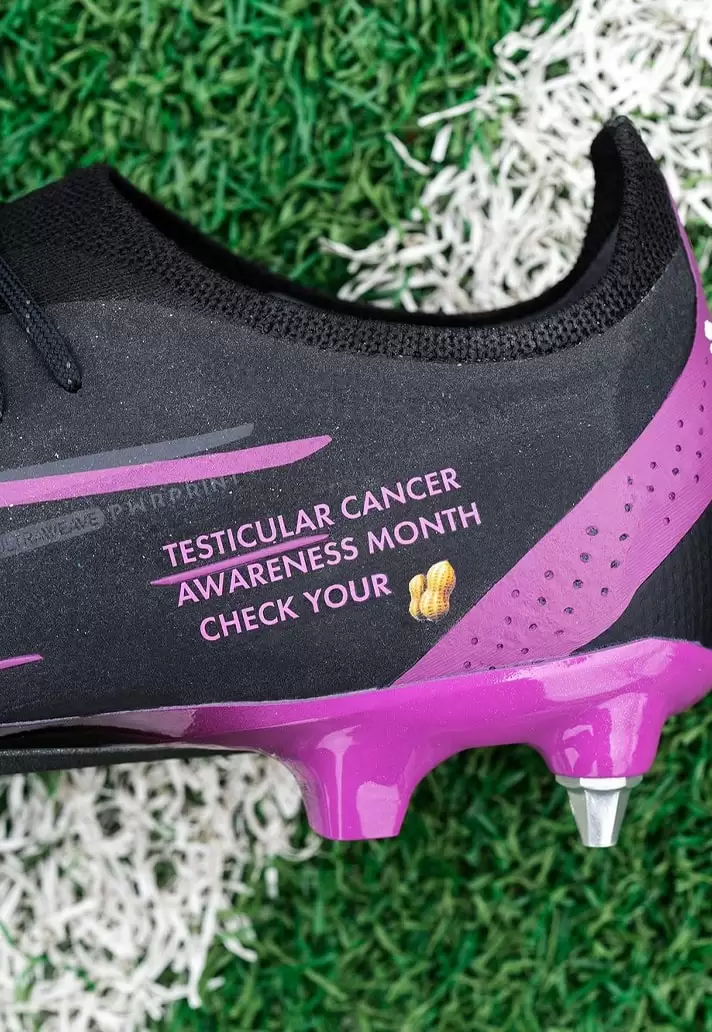El nuevo modelo de Haller viene en una base negra con detalles morados que sobresalen en la parte superior y la suela. La frase “Mes de concientización sobre el cáncer de testículo” está acompañada por una imagen de algunas nueces. El diseño se remata con la cinta de cáncer morada en el talón, que representa el cáncer testicular y el mes de la conciencia específica en abril. Es probable que Haller use estas botas en los próximos partidos de Dortmund, pero no se lanzarán al mercado.