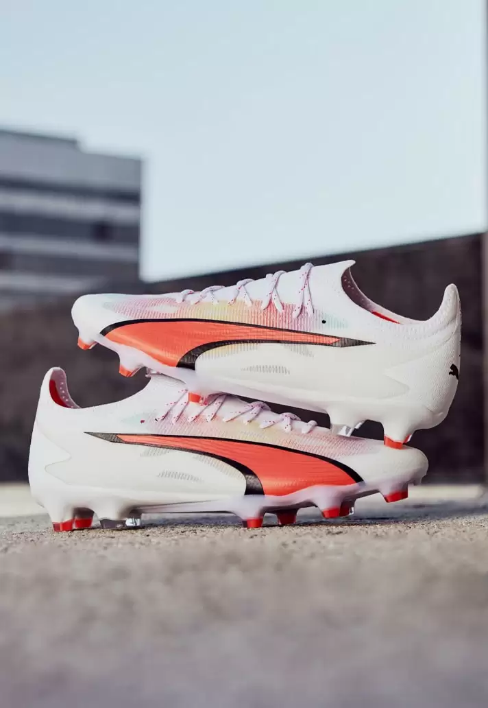 Comenzando con los Ultra Ultimate, se les incorpora la tecnología PWR TAPE, un elemento básico en los Future Ultimate. Como diferencia hay que en los Ultra la tecnología estará en el interior del botín, así brindando una mayor estabilidad y una buena estructura. Además del PWR TAPE los Puma Ultra Ultimate se encuentran pintados con "Puma White/Fire Orchid". Por último, habrá una nueva suela, que dará mayor velocidad y tracción con ligereza, uno de los motivos por los cuales las Ultra son tan famosas.