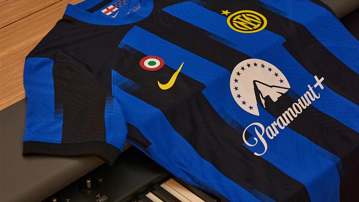 Esta vez, Nike optó por contrastar los tonos negros y azules con el amarillo, en el que destaca el swoosh y el escudo del Inter, mientras que la novedad reside en el patrocinador de la camiseta. Después de la asociación de la temporada pasada, el servicio de transmisión Paramount+ que estuvo en la camiseta de la final de la Champions League, se confirma como main sponsor.