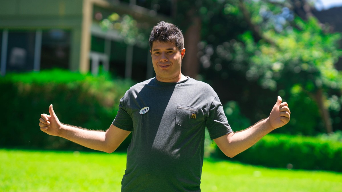 Ezequiel Barba, de 22 años, trabaja desde hace 1 año y medio en el restaurante McDonald's en el local de Olivos. Ezequiel, quien tiene una discapacidad intelectual, encontró en Arcos Dorados, una oportunidad laboral formal, que le permitió tener su primera experiencia e inspirar a otras personas.