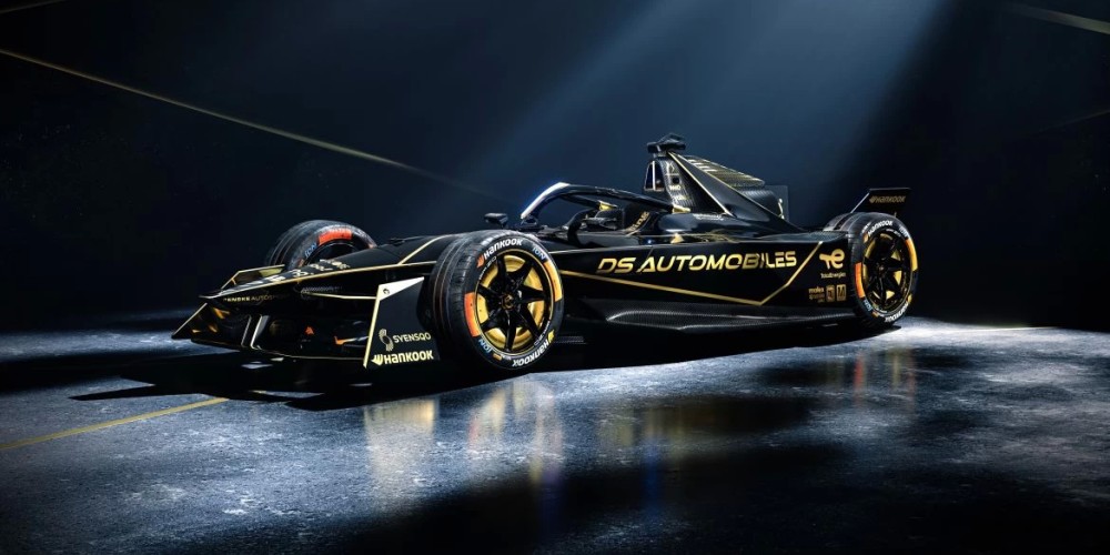 Con logotipos dorados sobre un fondo negro, el DS E-TENSE FE 23 "Gran Gala" del equipo franco-americano combinará estilo y prestaciones.