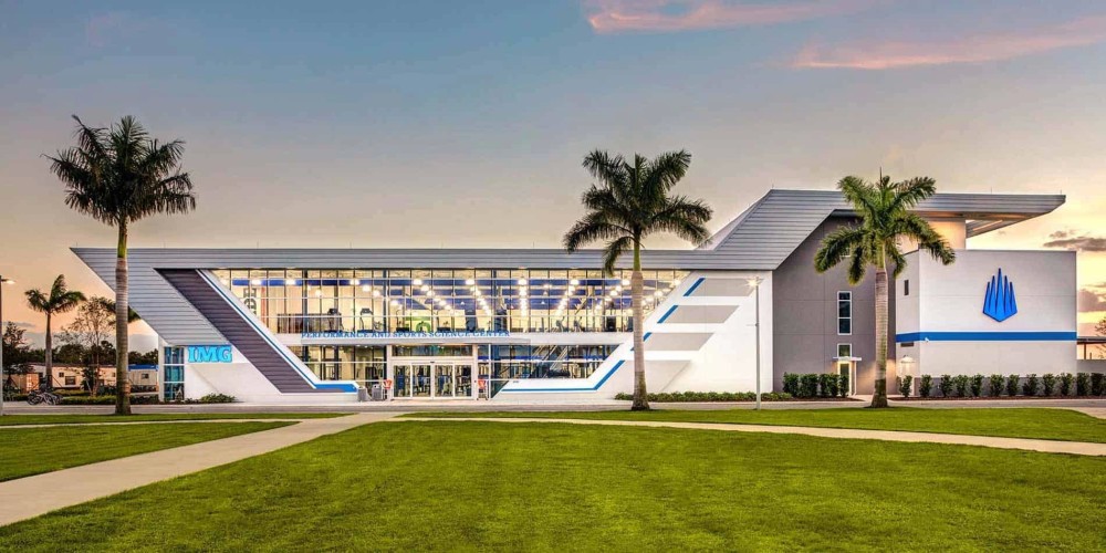 El campus está a pocos metros de la laguna de Sarasota Bay y posee 16 canchas de fútbol con césped natural, vestuarios modernos, oficinas, un hotel lujoso destinado a los visitantes llamado Legacy y un gimnasio de dos pisos de última tecnología. El IMG se destaca por el desarrollo de chicos y chicas de entre 10 y 18 años de edad y también en adultos con proceso universitario con orientación a deportes como atletismo, básquet, beisbol, fútbol americano, gol, lacrosse y tenis. Los estudiantes que asisten al lugar pagan cerca de 85 mil dólares al año y la academia fue valuada en 1.25 billones de dólares.