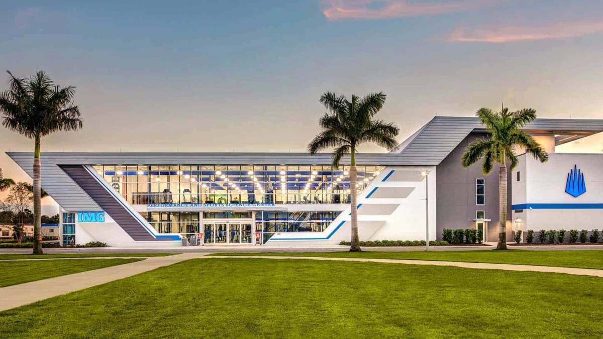 El campus está a pocos metros de la laguna de Sarasota Bay y posee 16 canchas de fútbol con césped natural, vestuarios modernos, oficinas, un hotel lujoso destinado a los visitantes llamado Legacy y un gimnasio de dos pisos de última tecnología. El IMG se destaca por el desarrollo de chicos y chicas de entre 10 y 18 años de edad y también en adultos con proceso universitario con orientación a deportes como atletismo, básquet, beisbol, fútbol americano, gol, lacrosse y tenis. Los estudiantes que asisten al lugar pagan cerca de 85 mil dólares al año y la academia fue valuada en 1.25 billones de dólares.