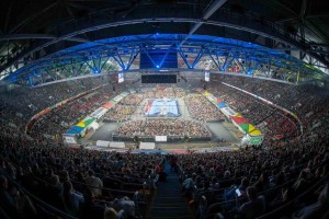 Los duelos se llevaron a cabo en el Merkur Spiel-Arena, en Düsseldorf, Alemania. El récord anterior también se había establecido en suelo alemán, cuando 44.189 espectadores asistieron al Frankfurt Arena el 6 de septiembre de 2014.