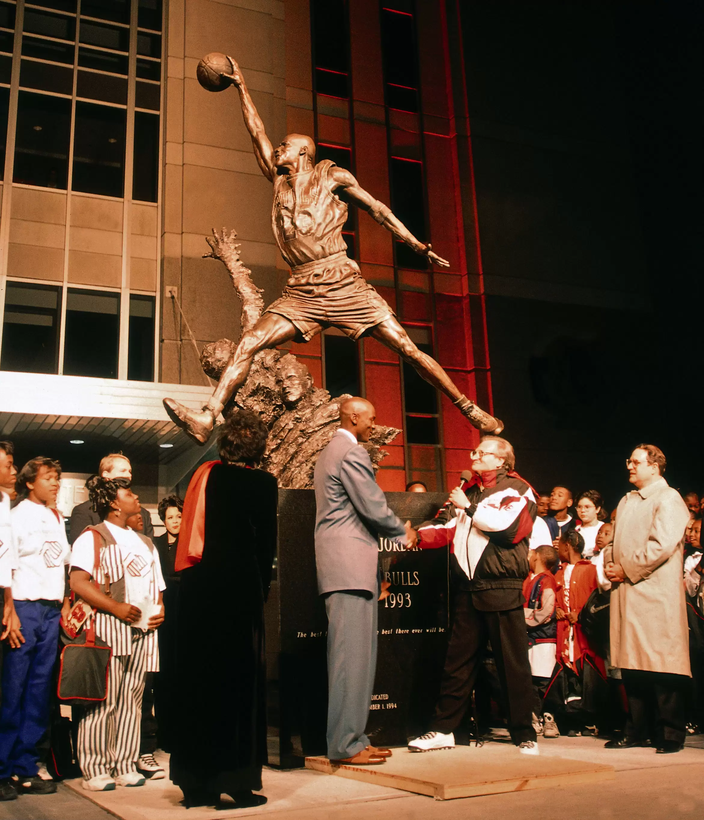 40 años después, Jordan lanzará lo que será la réplica más exacta de aquellas zapatillas, las Air Jordan 1 High Bred. Aprovechando la ocasión, Chicago Bulls colocó bloques tapando las zapatillas en la icónica estatua del atleta que se encuentra en su sede.