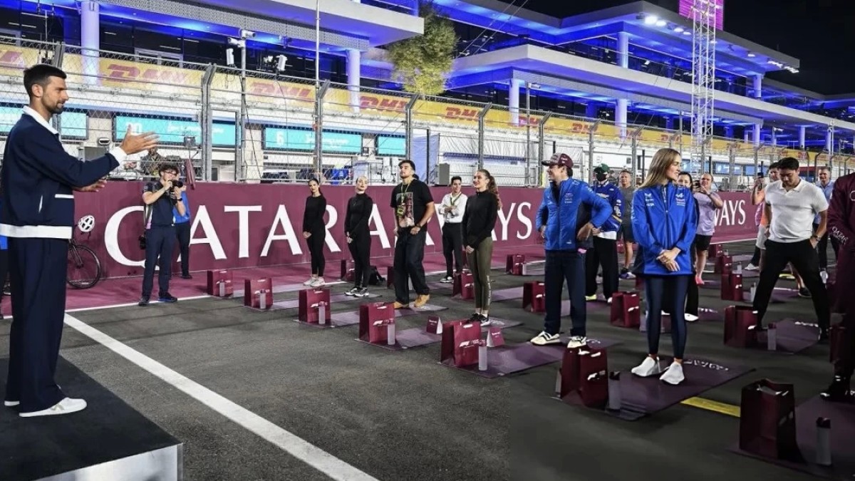 Djokovic participó de una sesión de movimiento y yoga en plena pista del Circuito Internacional de Lusail, actividad que Colapinto presenció con humor. El joven argentino incluso compartió el video en redes sociales con una frase que se viralizó rápidamente: “Gracias Novak por las clases. No pude seguir ni la entrada en calor, estoy re duro”. La química del cruce y la espontaneidad del piloto hicieron que el clip se volviera uno de los favoritos del día.