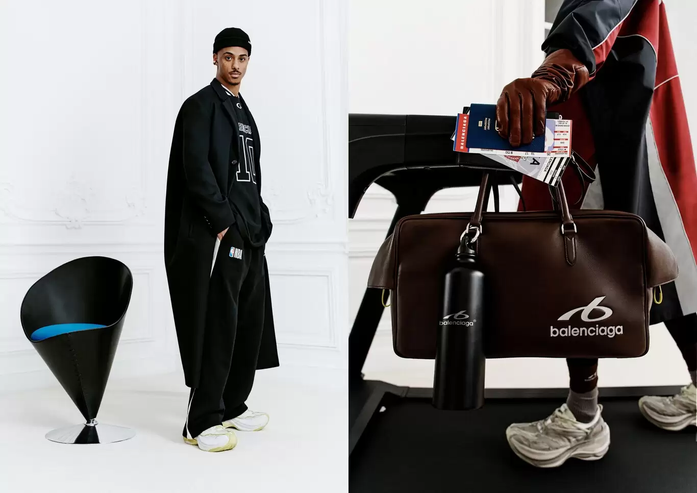 La colaboración se concreta en una colección cápsula que traduce la estética del baloncesto profesional al lenguaje creativo de Balenciaga. La línea incluye camisetas oversize, sudaderas, chaquetas y accesorios, con un fuerte ADN urbano y referencias directas a la identidad visual de la liga, como logotipos oficiales, tipografías deportivas y una paleta cromática vinculada al imaginario NBA.