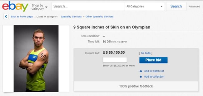 Con cinco pruebas por delante para conseguir su boleto, el velocista decidió subastar su hombro en eBay para conseguir dinero.